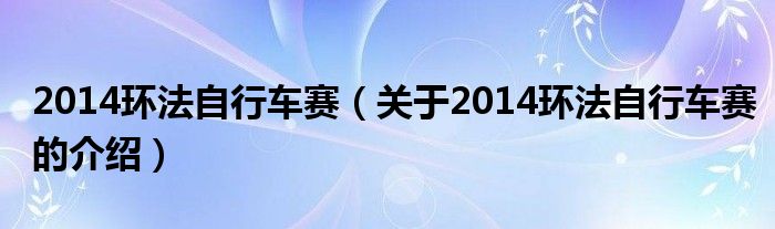 大家好,今天小乐来为大家解答以上的问题。2014环法自行车赛,关于2014环法自行车赛的介绍很多人还不知道,现在让我们一起来看看吧!