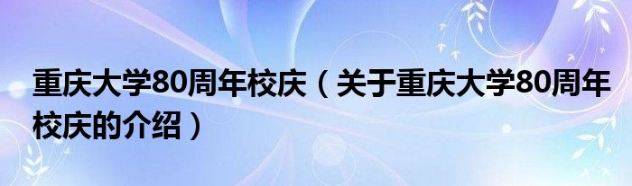重庆大学80周年校庆(关于重庆大学80周年校庆的介绍)
