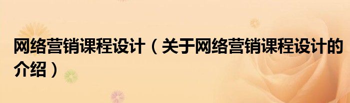 1、网络营销课程是网络营销培训机构为做网络营销的组织进行培训所设计的课程。