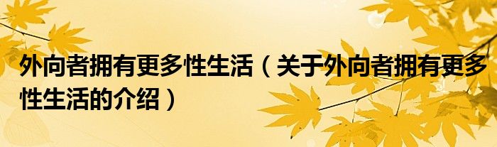 外向者拥有更多性生活(关于外向者拥有更多性生活的介绍)