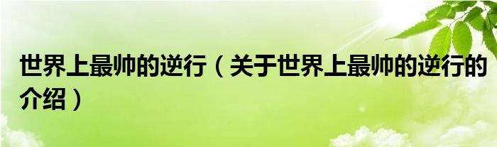 世界上最帅的逆行(关于世界上最帅的逆行的介绍)
