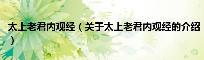 太上老君内观经(关于太上老君内观经的介绍)