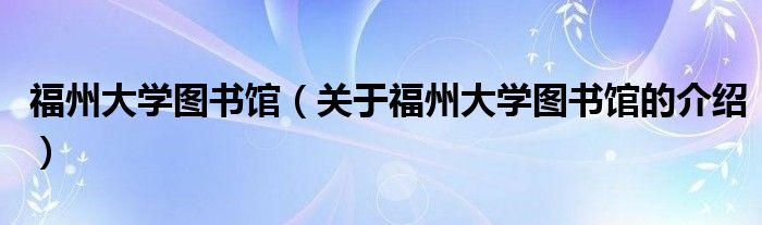 大家好,小都来为大家解答以上的问题。福州大学图书馆,关于福州大学图书馆的介绍很多人还不知道,现在让我们一起来看看吧!