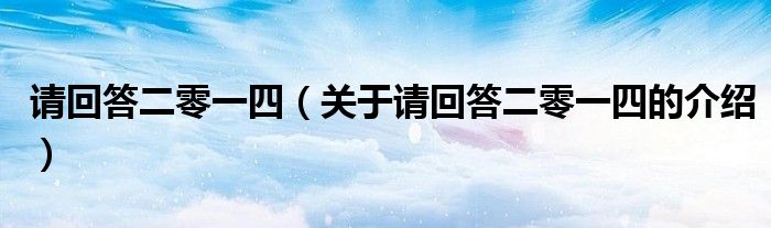 大家好,小都来为大家解答以上的问题。请回答二零一四,关于请回答二零一四的介绍很多人还不知道,现在让我们一起来看看吧!