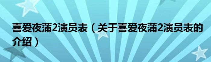 大家好,小都来为大家解答以上的问题。喜爱夜蒲2演员表,关于喜爱夜蒲2演员表的介绍很多人还不知道,现在让我们一起来看看吧!