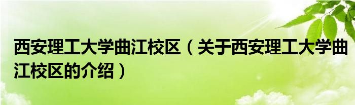 1、西安理工大学曲江校区是学校为适应迅猛发展需要在西安市东南部雁翔路、曲江旅游度假开发区设立的第二校区。