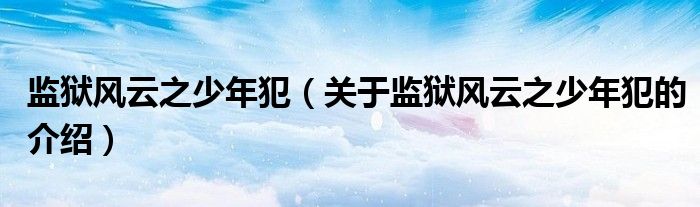 大家好,小都来为大家解答以上的问题。监狱风云之少年犯,关于监狱风云之少年犯的介绍很多人还不知道,现在让我们一起来看看吧!