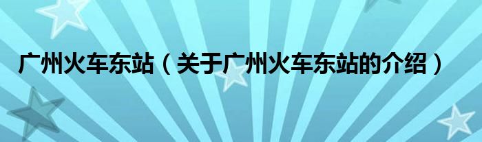 广州火车东站(关于广州火车东站的介绍)