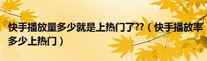 快手播放量多少就是上热门了??(快手播放率多少上热门)