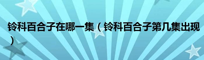 大家好,小晋来为大家解答以下问题,关于铃科百合子在哪一集,铃科百合子第几集出现很多人还不知道,今天让我们一起来看看吧!