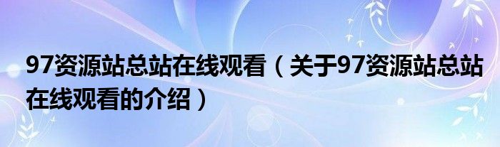 97资源站总站在线观看(关于97资源站总站在线观看的介绍)