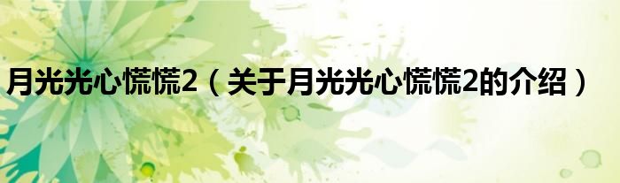 大家好,小都来为大家解答以上的问题。月光光心慌慌2,关于月光光心慌慌2的介绍很多人还不知道,现在让我们一起来看看吧!