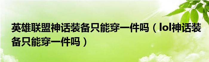 大家好,雨雨来为大家解答以上问题,英雄联盟神话装备只能穿一件吗,lol神话装备只能穿一件吗很多人还不知道,现在让我们一起来看看吧!