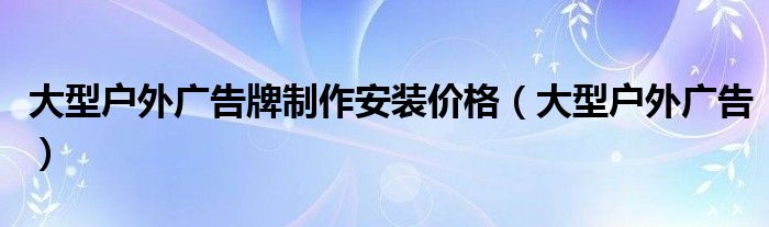 大家好,雨雨来为大家解答以上问题,大型户外广告牌制作安装价格,大型户外广告很多人还不知道,现在让我们一起来看看吧!
