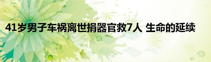 大家好.我是互联百科的羽儿,现在为大家解决以上41岁男子车祸离世捐器官救7人 生命的延续的问题.