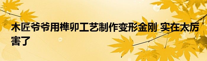 2、日前,一则“木匠爷爷用榫卯工艺制作变形金刚”引发关注。据悉,这个福建木匠爷爷用榫卯工艺制作变形金刚,关节还能动,实在令人惊艳!