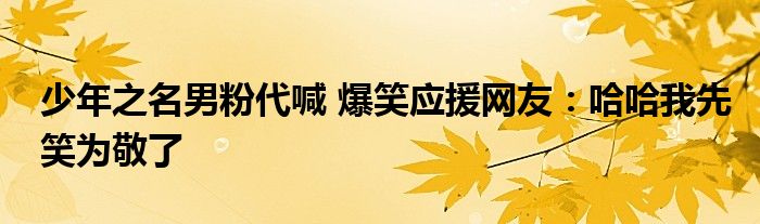 大家好.我是互联百科的羽儿,现在为大家解决以上少年之名男粉代喊 爆笑应援网友:哈哈我先笑为敬了的问题.