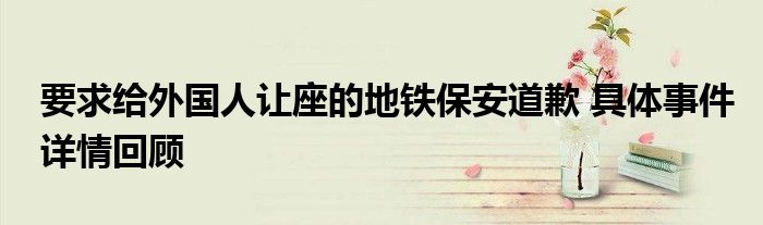 大家好.我是互联百科的羽儿,现在为大家解决以上要求给外国人让座的地铁保安道歉 具体事件详情回顾的问题.