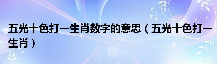 五光十色打一生肖数字的意思(五光十色打一生肖)