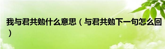 大家好,小晋来为大家解答以下问题,关于我与君共勉什么意思,与君共勉下一句怎么回很多人还不知道,今天让我们一起来看看吧!