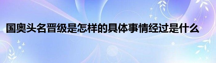 大家好.我是互联百科的羽儿,现在为大家解决以上国奥头名晋级是怎样的具体事情经过是什么的问题.