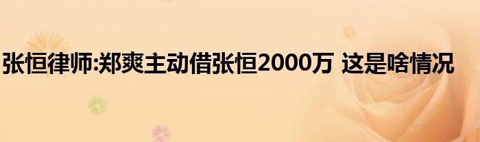 张恒律师:郑爽主动借张恒2000万 这是啥情况