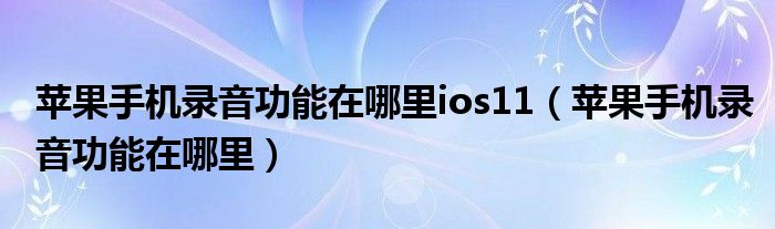 大家好,雨雨来为大家解答以上问题,苹果手机录音功能在哪里ios11,苹果手机录音功能在哪里很多人还不知道,现在让我们一起来看看吧!