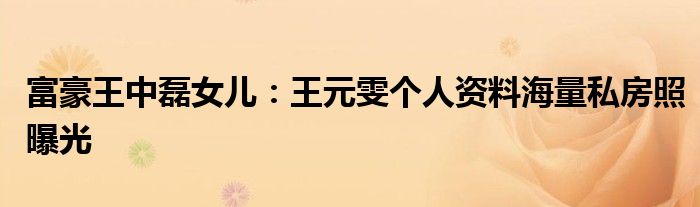 大家好.我是互联百科的羽儿,现在为大家解决以上富豪王中磊女儿:王元雯个人资料海量私房照曝光的问题.