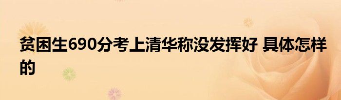 贫困生690分考上清华称没发挥好具体怎样的