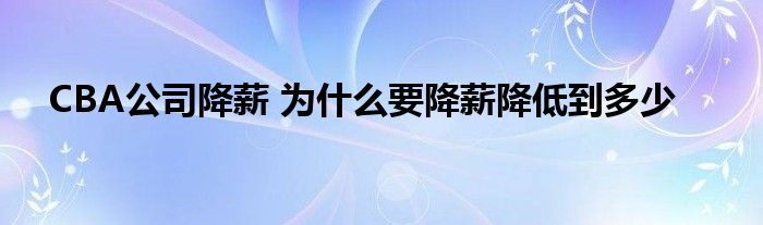 大家好.我是互联百科的羽儿,现在为大家解决以上CBA公司降薪 为什么要降薪降低到多少的问题.