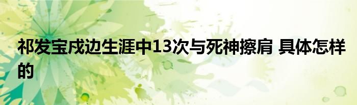 大家好.我是互联百科的羽儿,现在为大家解决以上祁发宝戍边生涯中13次与死神擦肩 具体怎样的的问题.