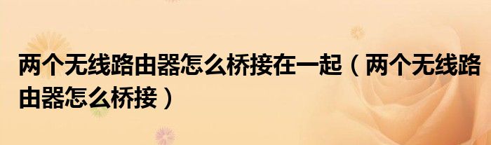 大家好,雨雨来为大家解答以上问题,两个无线路由器怎么桥接在一起,两个无线路由器怎么桥接很多人还不知道,现在让我们一起来看看吧!