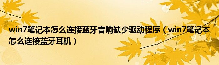 关于win7笔记本怎么连接蓝牙音响缺少驱动程序,win7笔记本怎么连接蓝牙耳机这个很多人还不知道,今天菲菲来为大家解答以上的问题,现在让我们一起来看看吧!
