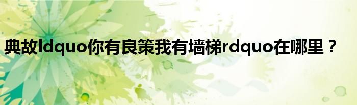 关于典故ldquo你有良策我有墙梯rdquo在哪里?这个很多人还不知道,今天菲菲来为大家解答以上的问题,现在让我们一起来看看吧!