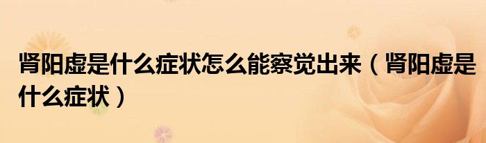 大家好,乐天来为大家解答以下的问题,肾阳虚是什么症状怎么能察觉出来,肾阳虚是什么症状很多人还不知道,现在让我们一起来看看吧!