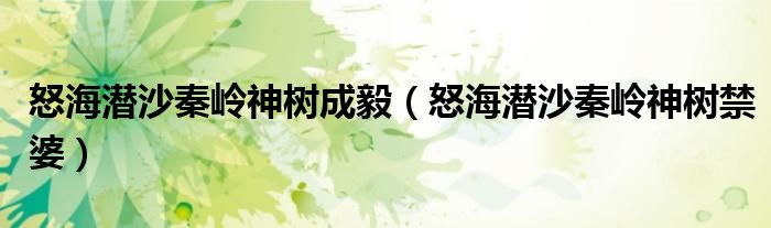 大家好,小晋来为大家解答以下问题,关于怒海潜沙秦岭神树成毅,怒海潜沙秦岭神树禁婆很多人还不知道,今天让我们一起来看看吧!