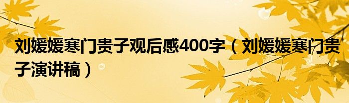 关于刘媛媛寒门贵子观后感400字,刘媛媛寒门贵子演讲稿这个很多人还不知道,今天菲菲来为大家解答以上的问题,现在让我们一起来看看吧!