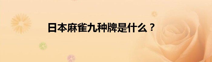 关于日本麻雀九种牌是什么?这个很多人还不知道,今天菲菲来为大家解答以上的问题,现在让我们一起来看看吧!