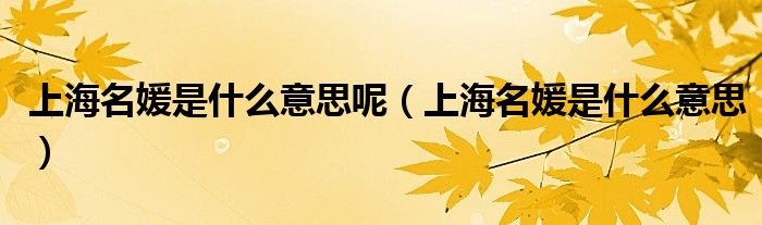 关于上海名媛是什么意思呢,上海名媛是什么意思这个很多人还不知道,今天菲菲来为大家解答以上的问题,现在让我们一起来看看吧!