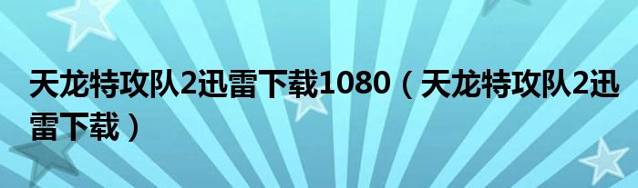 天龙特攻队2迅雷下载1080(天龙特攻队2迅雷下载)