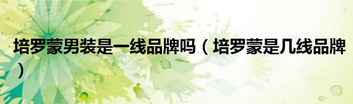 最佳答案大家好,小晋来为大家解答以下问题,关于培罗蒙男装是一线品牌吗,培罗蒙是几线品牌很多人还不知道,今天让我们一起来看看吧!1、佩蒙是一个高端服装品牌。2、根据群体类型不同,有金、银、铜三个子品牌,三个不同档次。3、罗蒙1928年在上海创立的品牌主要推出西装和大衣,现在也设计男装的其他领域...