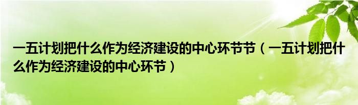 一五计划把什么作为经济建设的中心环节节(一五计划把什么作为经济建设的中心环节)
