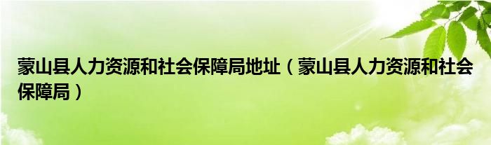 蒙山县人力资源和社会保障局地址(蒙山县人力资源和社会保障局)