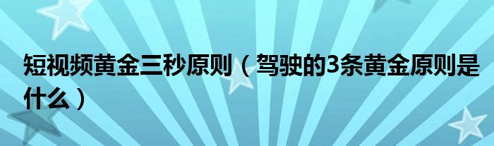 关于短视频黄金三秒原则,驾驶的3条黄金原则是什么这个很多人还不知道,今天菲菲来为大家解答以上的问题,现在让我们一起来看看吧!