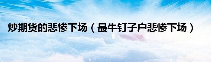 炒期货的悲惨下场(最牛钉子户悲惨下场)