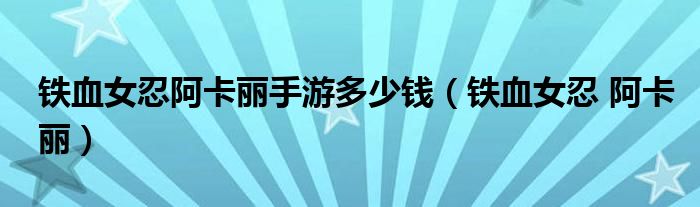 大家好,小小来为大家解答以下问题,铁血女忍阿卡丽手游多少钱,铁血女忍 阿卡丽很多朋友还不知道,现在让我们一起来看看吧!