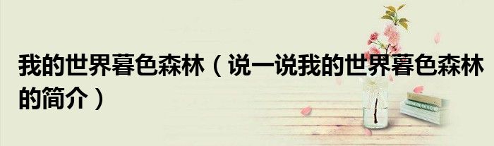 夏弥来为大家解答以下的问题,我的世界暮色森林,说一说我的世界暮色森林的简介,现在让我们一起来看看吧!