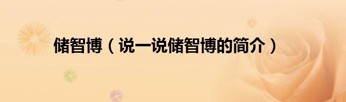 夏弥来为大家解答以下的问题,储智博,说一说储智博的简介,现在让我们一起来看看吧!