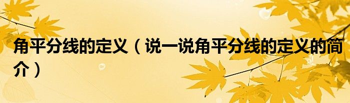 夏弥来为大家解答以下的问题,角平分线的定义,说一说角平分线的定义的简介,现在让我们一起来看看吧!