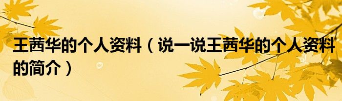 王茜华的个人资料(说一说王茜华的个人资料的简介)